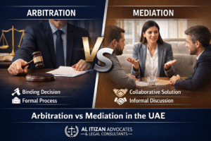 Arbitration vs Mediation in the UAE: Choosing the Right Dispute Resolution Method BOOK AN APPOINTMENT In today’s business environment, resolving disputes efficiently is essential. In the United Arab Emirates, alternative